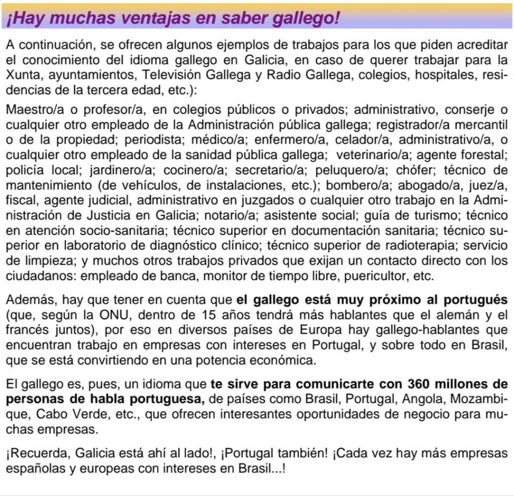 A inexistente protección del galego propicia que se imparta formación por un profesorado sen preparación axeitada (cursíos de capacitación de 15 días), que se divulgue a crenza de que en Asturias non se fala galego e que se lles ofreza aos alumnos e alumnas úa acreditación sen valor ningún.