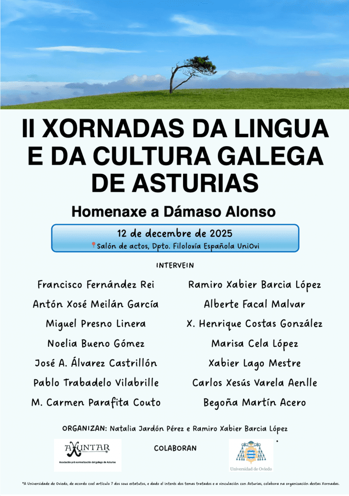 Coordinadas pola Doutora en Lingüística Xeneral (Universidad Autónoma de Barcelona & CEU Wien -Central University en Viena-) Natalia Jardón Pérez, nas II Xornadas da Lingua e da Cultura Galega de Asturias -organizadas gracias á colaboración de Xabier Barcia, a UniOvi e Axuntar– un grupo de expertos e expertas analizarán temas lingüísticos, xurídicos, históricos, etc. que axudarán a entender millor el territorio e os problemas aos que se enfrenta a sociedade del Eo-Navia e que dificultan ou impiden el exercicio dos sous deretos lingüísticos e poin en cuestión el futuro del sou idioma propio: el galego.