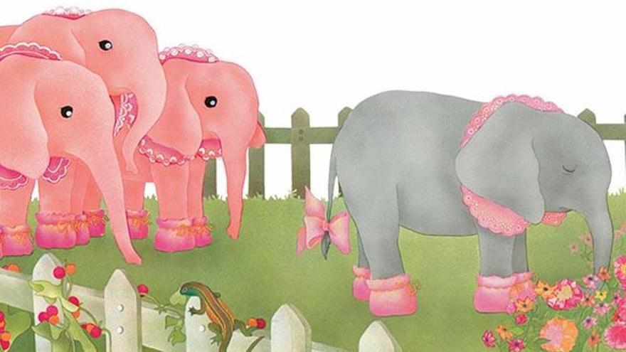 Había úa vez nel país dos elefantes… úa manda na que as elefantas eran suaves como el veludo, tiñan os ollos grandes e brillantes, e a pel de cor rosa caramelo. Todo isto debíase a que, desde o mesmo día do seu nacemento, as elefantas só comían anémonas e peonias. E non era que lles gustasen estas flores: as anémonas -e aínda peor as peonias- teñen un sabor malísimo.